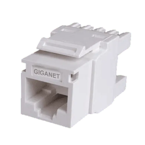 - Mounting: Standard snap-in retaining clip compatible with Giganet faceplates, shutters, and angled patch panels