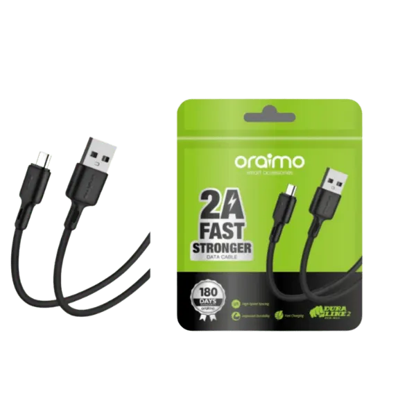 The Oraimo micro-usb cable Duraline (OCD-M53) is a durable and reliable USB-A to Micro-USB cable designed for fast charging and efficient data transfer. Built as part of the Oraimo Duraline series, this cable combines a strong reinforced structure with high-quality copper wiring to deliver stable performance for everyday use. Ideal for older Android smartphones, Bluetooth devices, cameras, and other Micro-USB electronics, it offers long-lasting durability, tangle-resistant handling, and safe power delivery in a compact 1 meter design.