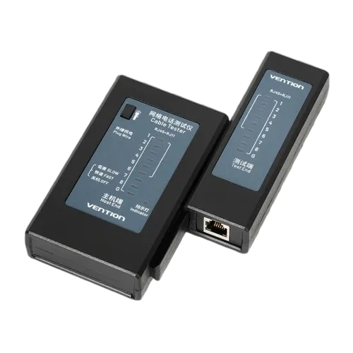 The Vention Network Cable Tester (KEFB0) is a professional manual diagnostic tool designed for verifying the integrity and wiring accuracy of Ethernet (RJ45) and telephone (RJ11) cables. It is widely used by IT technicians, network installers, and maintenance engineers to quickly detect common cabling faults such as open circuits, short circuits, miswires, and split pairs. With support for both standard and long-distance cable testing, it is an essential tool for troubleshooting and maintaining structured network installations.