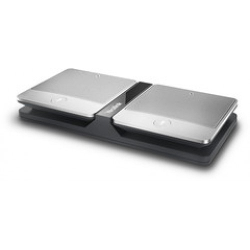 Comes with a “place-and-charge” cradle capable of charging two microphones simultaneously, making setup and storage efficient for conference rooms.